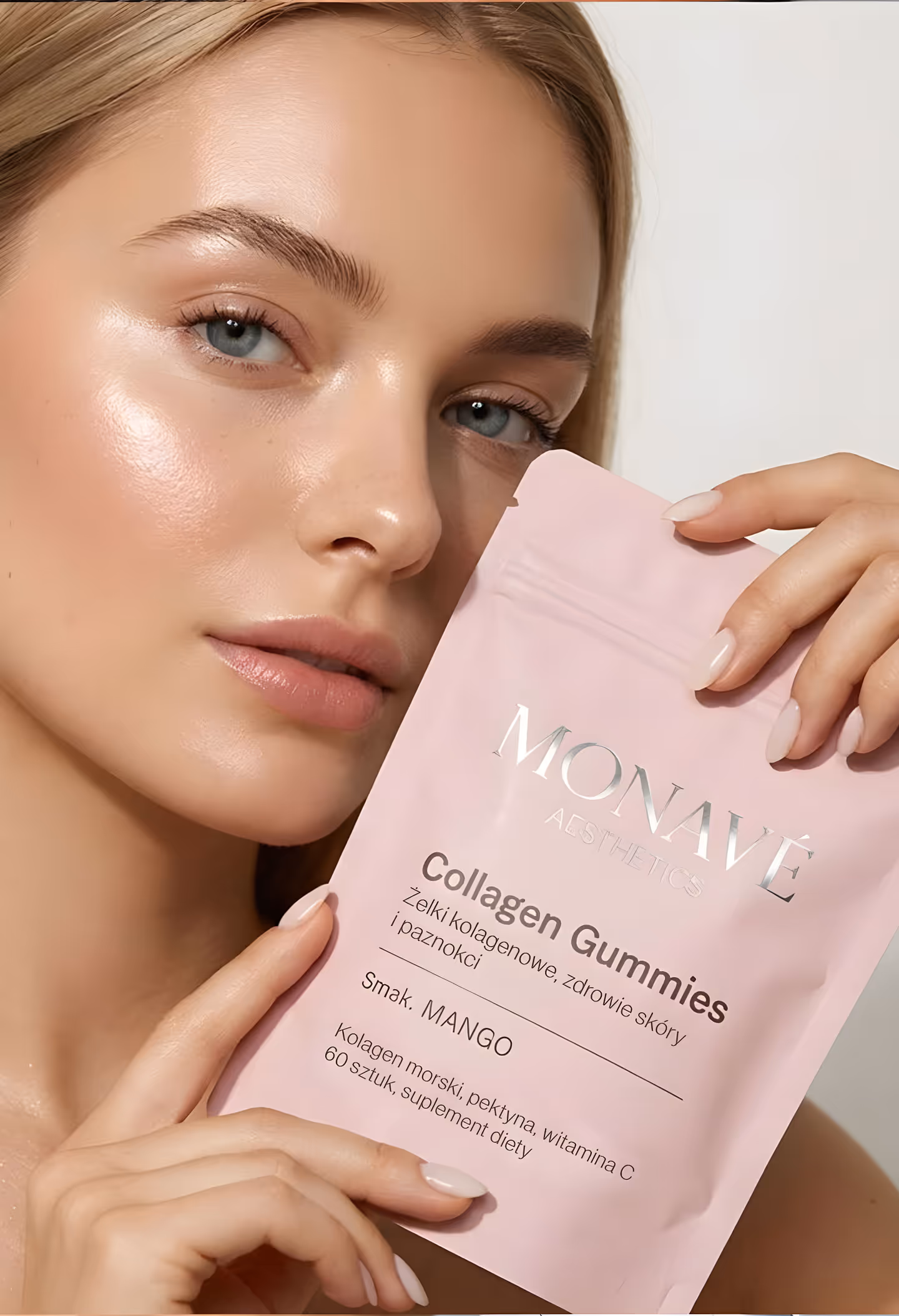 Nowy wymiar suplementacji. Żelki kolagenowe Monavé to innowacyjna, wygodna forma suplementacji. Bez żmudnego miksowania, odpadów, rybiego posmaku. Pyszny żelek o smaku mango rozpieszcza cię i dba o twoją skórę, włosy i paznokcie wtedy, gdy tego chcesz - w pracy, w samochodzie czy na siłowni.